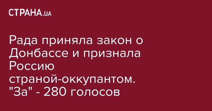 Сегодня, 18 января Верховная Рада Украины приняла таки закон о деоккупации Донбасса, в котором Россию признали страной - оккупантом. "За" проголосовали  280 народных депутата.