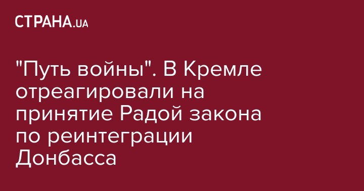 "Путь войны". В Кремле отреагировали на принятие Радой закона по реинтеграции Донбасса