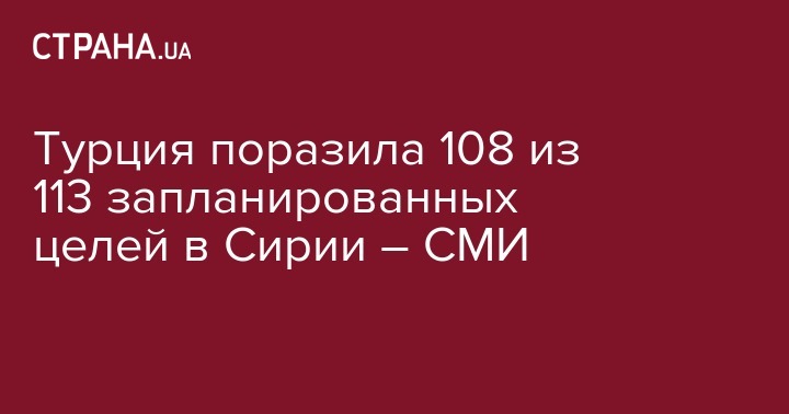 Военно-воздушные силы Турции поразили 108 из 113 намеченных целей в рамках военной операции "Оливковая ветвь" в сирийском Африне.