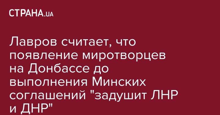 "Обещание о том, что они потом будут выполнены, когда военная ооновская администрация возьмет под контроль всю эту территорию, сомнительное. Если авторы этой идеи уговорят Донецк и Луганск - пожалуйста. Именно это предусмотрено Минскими договоренностями и одобрено СБ ООН. Но я считаю, что те, кто продвигает такую концепцию, просто хотят задушить эти две территории", - сказал Лавров.