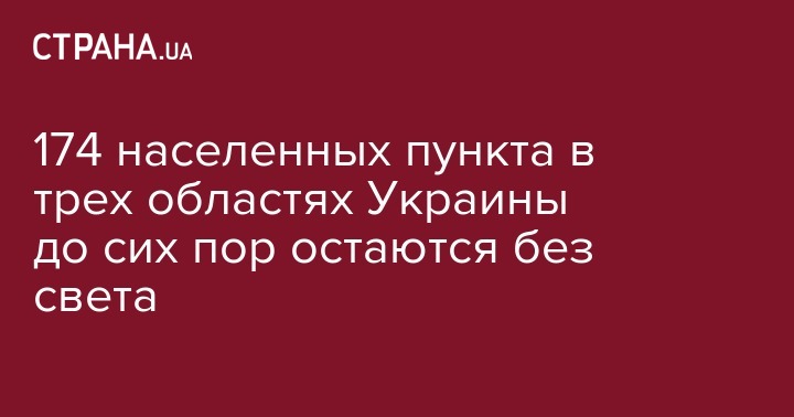 "Остаются обесточенными 174 населенных пункта в 3 областях: Одесская – 126, Черкасская – 44 и 4 в Донецкой", – говорится в сообщении.