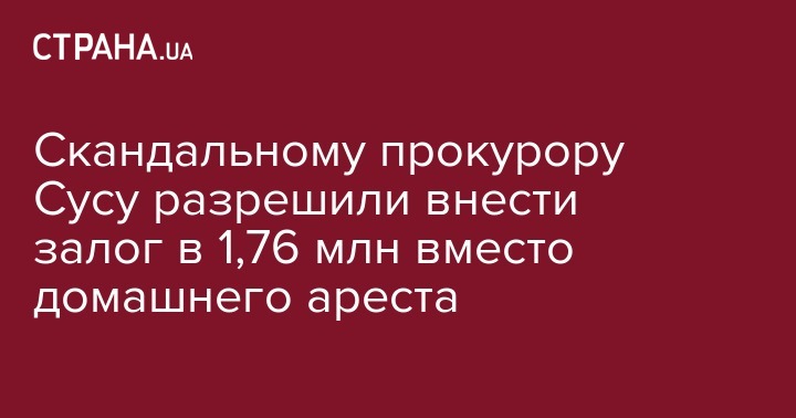 Скандальному прокурору Сусу разрешили внести залог в 1,76 млн вместо домашнего ареста