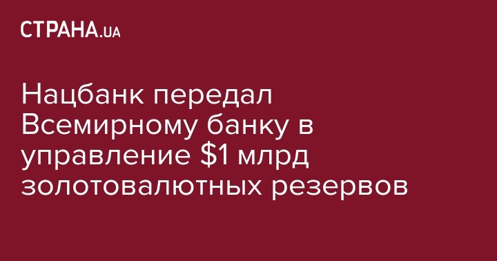 "Часть золотовалютных резервов передана в управление Всемирного банка в размере до $1 млрд", - сообщил он. По данным НБУ, Всемирный банк управляет резервами 53 стран мира.