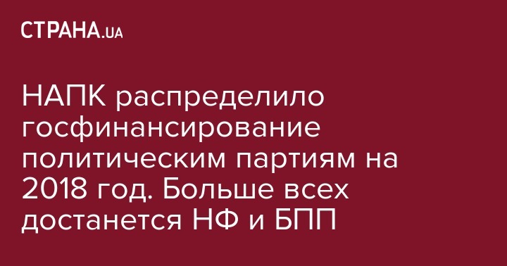 Национальное агентство по предотвращению коррупции распределило 513 млн 671 тыс. гривен на финансирование уставной деятельности шести политических партий на 2018 год.