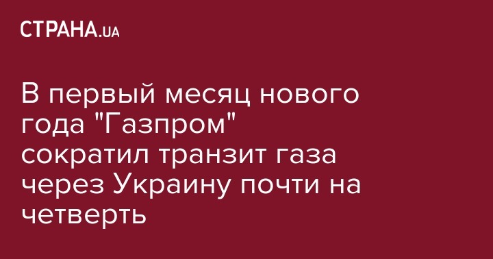 В первый месяц нового года "Газпром" сократил транзит газа через Украину почти на четверть