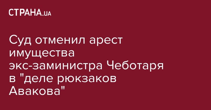 Апелляционный суд Киева отменил постановление Соломенского районного суда столицы об аресте квартиры и двух домов экс-заместителя МВД Сергея Чеботаря по делу закупки рюкзаков для МВД и направил материалы дела на повторное рассмотрение. Об этом сообщает УНН.