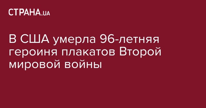 В США умерла 96-летняя героиня плакатов Второй мировой войны