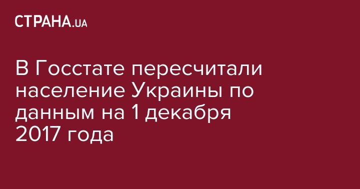 В Украине численность населения по оценке на 1 декабря 2017 года составляет 42 403 027 человек.