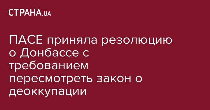 ПАСЕ приняла резолюцию о Донбассе с требованием пересмотреть закон о деоккупации