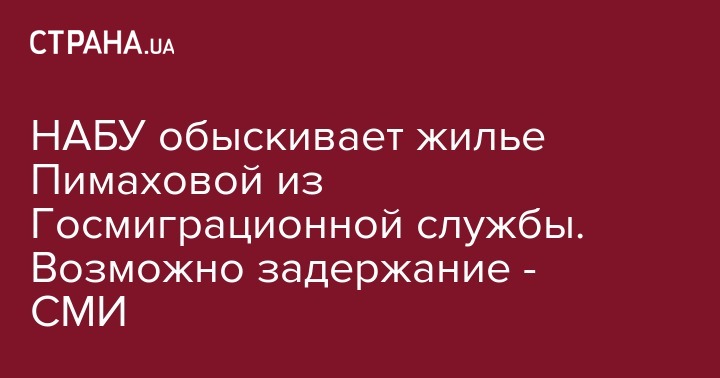 НАБУ проводит обыск дома у первого заместителя председателя Государственной миграционной службы Дины Пимаховой, которая стала фигурантом громкого скандала с якобы провоцированием взятки со стороны детектива Бюро.