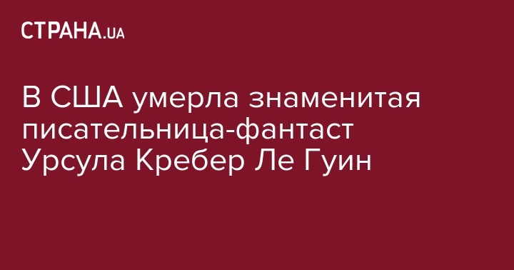 В США в возрасте 88 лет скончалась известная писательница и литературный критик Урсула Кребер Ле Гуин. Об этом сообщает The New York Times.