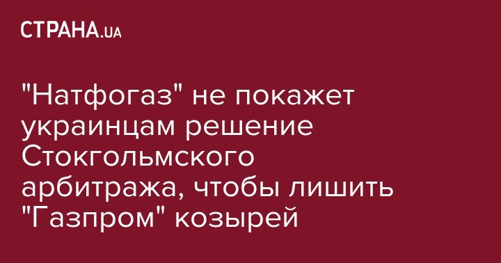 "Натфогаз" не покажет украинцам решение Стокгольмского арбитража, чтобы лишить "Газпром" козырей