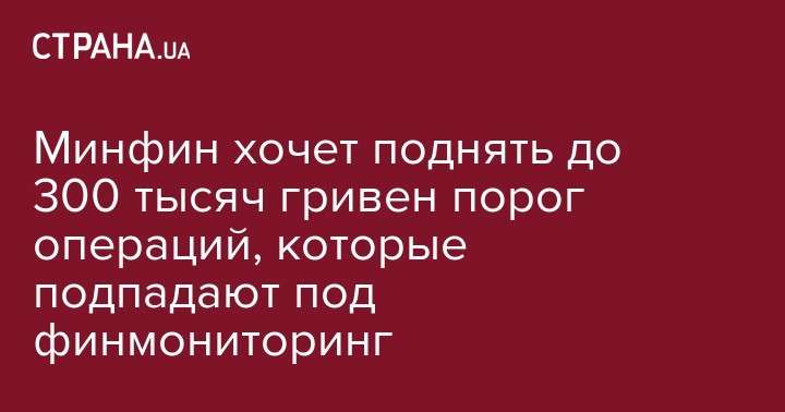 Минфин хочет поднять до 300 тысяч гривен порог операций, которые подпадают под финмониторинг