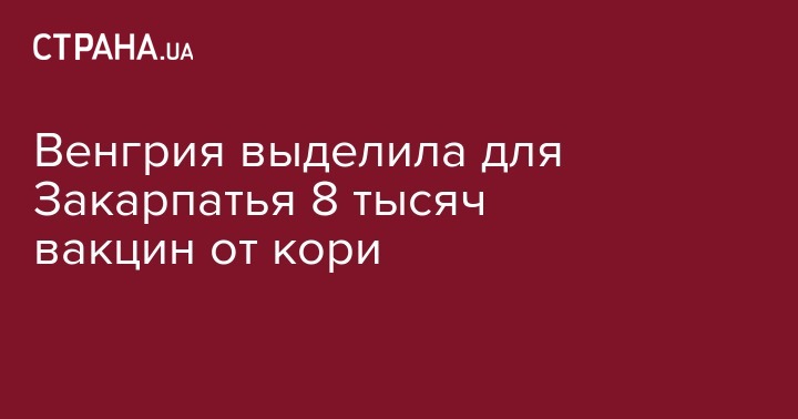 Власти Венгрии предоставят для нужд Закарпатской области 8 тыс. вакцин от кори. Их привезут 26 января 2018 в качестве гуманитарной помощи.