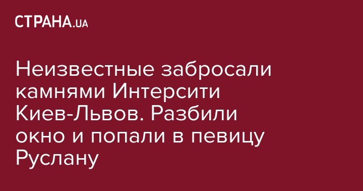 В четверг, 25 января, скоростной поезд Интерсити, который следовал из Киева во Львов, неизвестные забросали камнями во время движения. Один из них разбил окно возле которого сидела певица руслана и упал ей на колени.