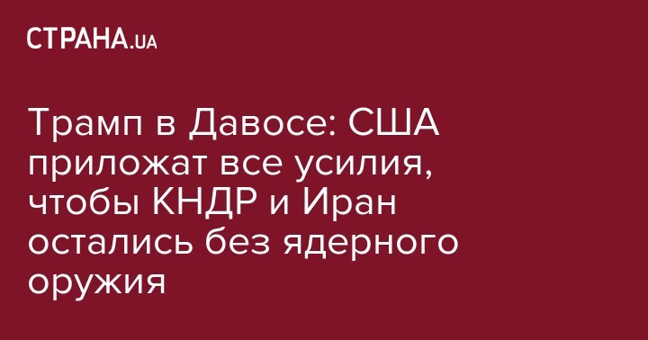Трамп в Давосе: США приложат все усилия, чтобы КНДР и Иран остались без ядерного оружия