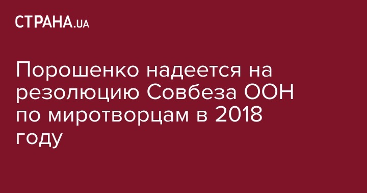 Президент Украины Петр Порошенко надеется, что резолюцию Совета безопасности ООН о введении миротворцев на Донбасс примут в 2018 году.
