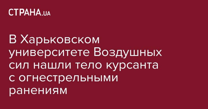 В Харьковском университете Воздушных Сил имени Ивана Кожедуба (ХУВС) был найден труп курсанта с огнестрельными ранениями. Об этом сообщает пресс-служба командования Воздушных сил Вооруженных сил в Facebook.