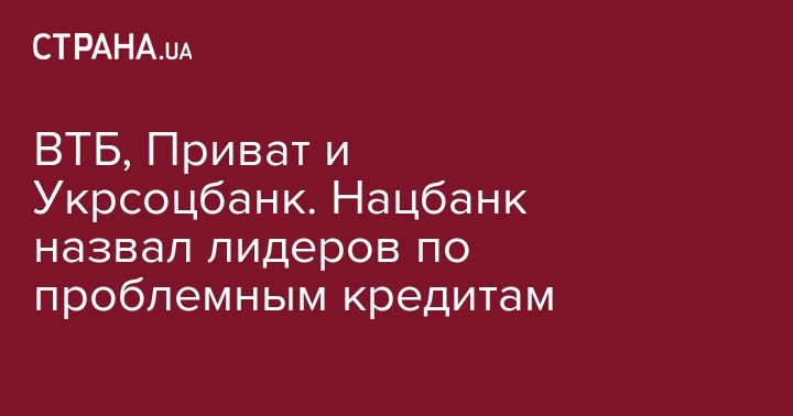 Нацбанк обнародовал рейтинг банков по проблемным кредитам. Лидируют в нем ВТБ, национализированный "Приватбанк" и "Укрсоцбанк", приобретенный "Альфа-банком". У них больше всех проблемных кредитов, передает "Экономическая правда".
