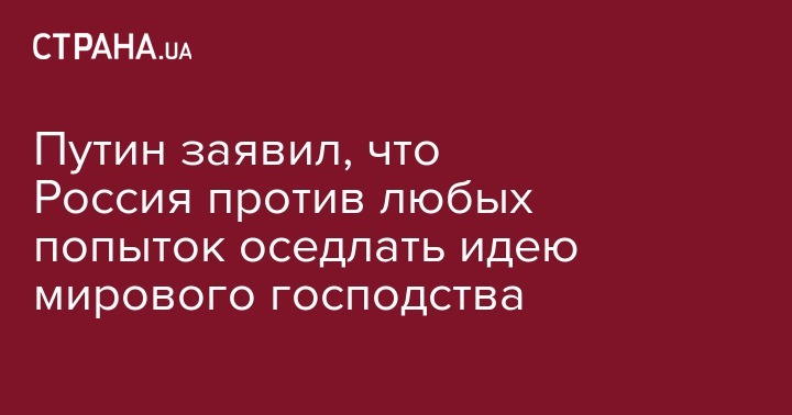 Путин заявил, что Россия против любых попыток оседлать идею мирового господства