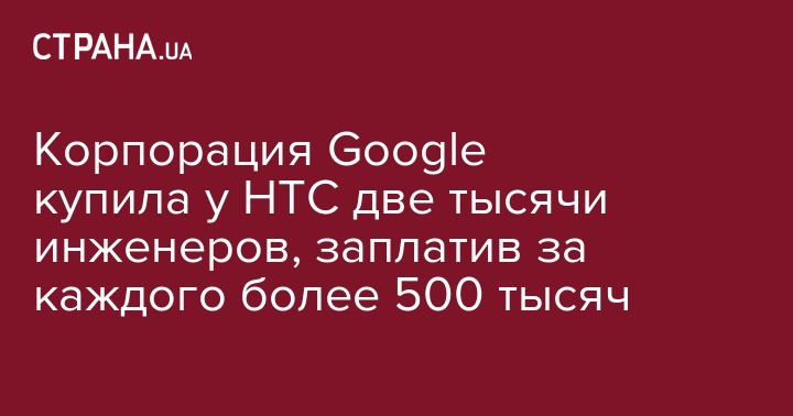 Руководство корпорации Google осуществило сделку по переводу в свой штат части сотрудников тайванской HTC. За две тысячи инженеров корпорация заплатила $1.1 млрд, передает The Verge.