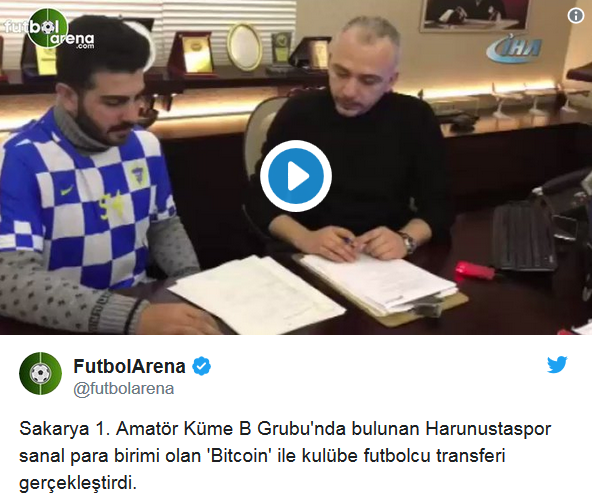 Турецкий любительский клуб "Арунустаспор" купил игрока Омера Фарука Кироглу за биткоины.