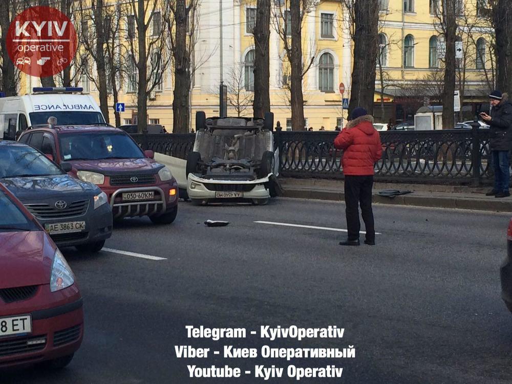 Напомним также, что в Киеве на Московском мосту столкнулись четыре автомобиля и троллейбус, образовалась пробка.