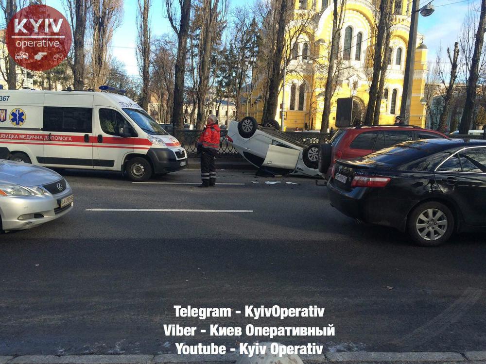 Сегодня, 31 января, в Киеве произошло серьезное ДТП возле Владимирской церкви. Об этом сообщает "Киев Оперативный" на своей странице в Facebook.