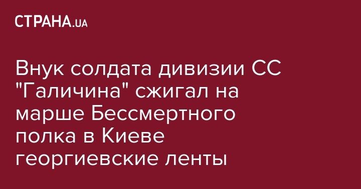 Один из них был одет в чёрную футболку с эмблемой дивизии СС "Галичина". Он сказал нам, что его дед воевал в этой дивизии. А он сам сейчас воюет в АТО против русских, "также как и его дед". "И я не хочу, чтобы по Киеву ходили люди с колорадскими ленточками - символами российской агрессии. Я их срываю и сжигаю", - сказал парень "Стране".