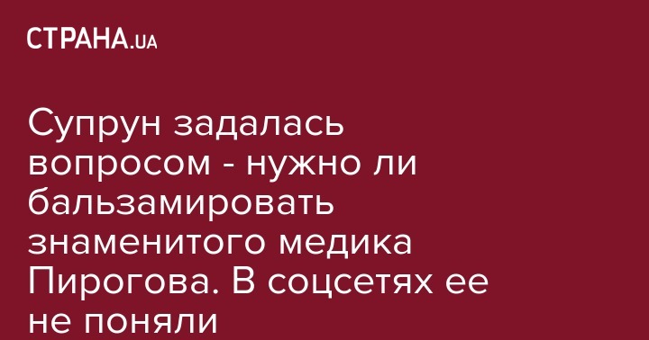 И.о. министра здравоохранения Ульяна Супрун на своей странице в Facebook разместила опрос о дальнейшей судьбе тела похороненного в Виннице ученого Николая Пирогова.