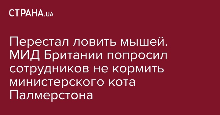 Сотрудникам Министерства иностранных дел Великобритании посоветовали не кормить кота Палмерстона, потому что он стал хуже ловить мышей, сообщает The Telegraph.