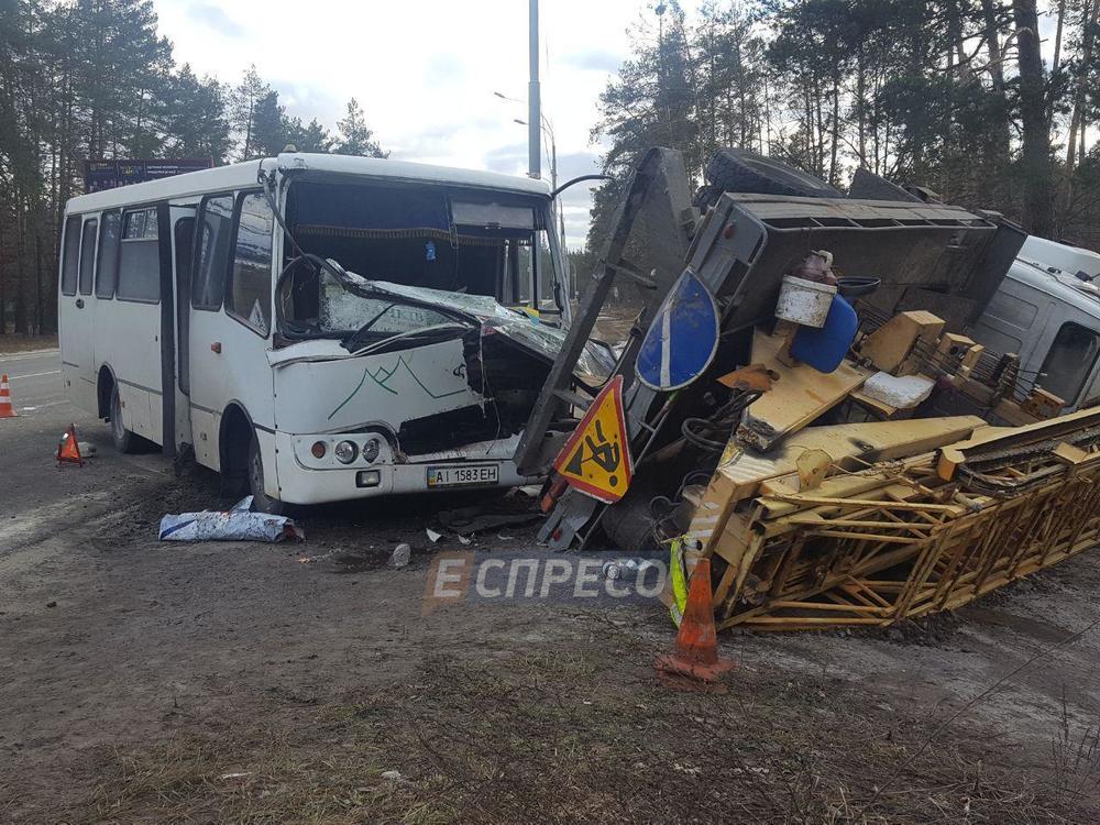 В среду, 31 января на Минском шоссе - на выезде из Киева в сторону Вышгорода произошло ДТП. Маршрутный автобус "Богдан" врезался в грузовой "ГАЗ". В результате столкновения пострадали пять человек, включая водителя и пассажиров маршрутки.