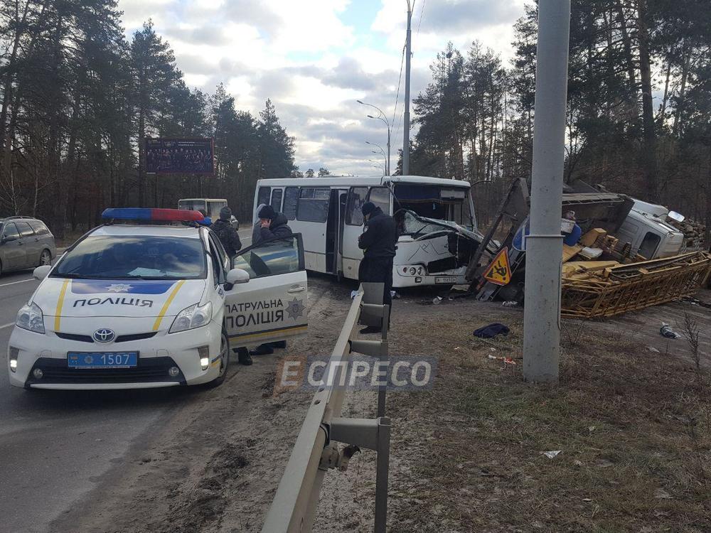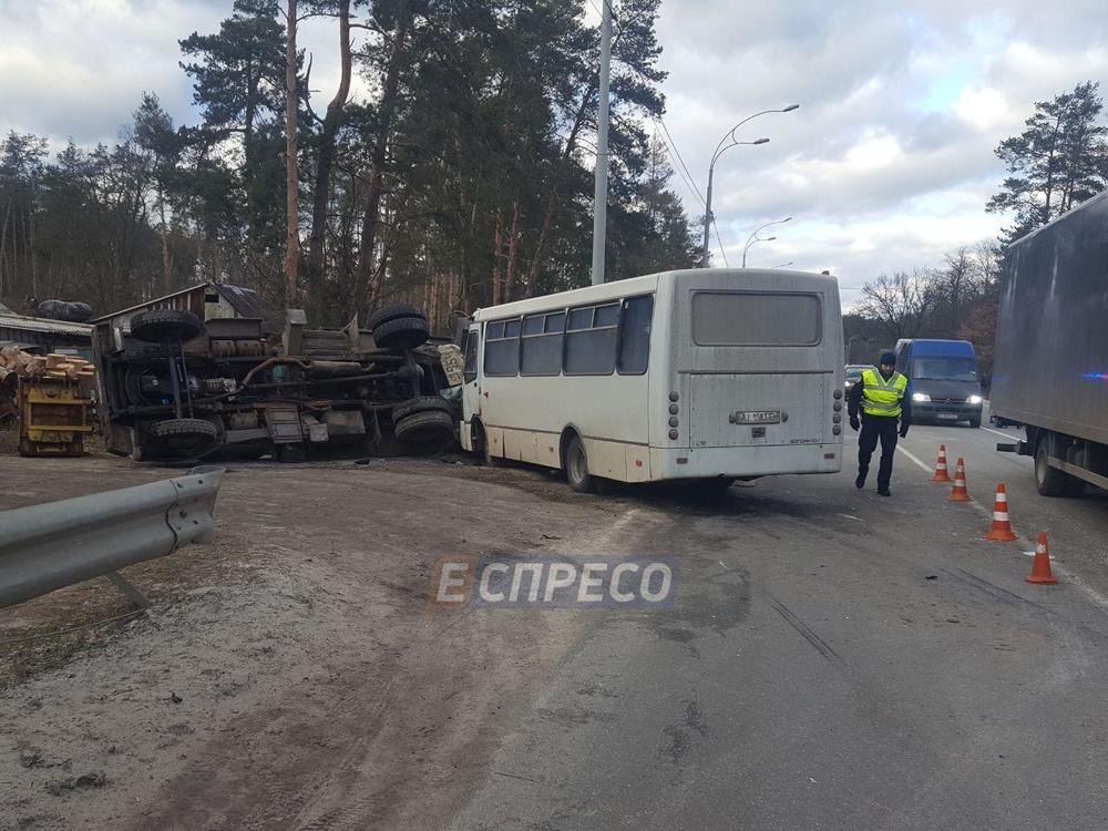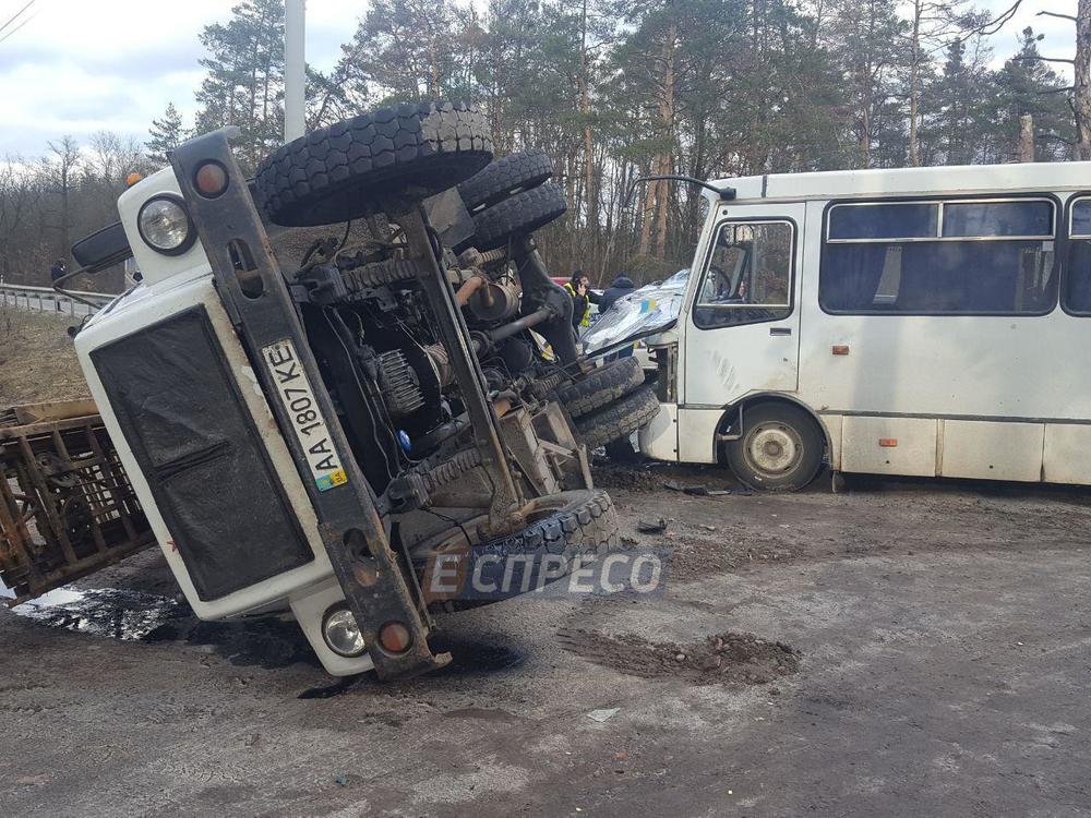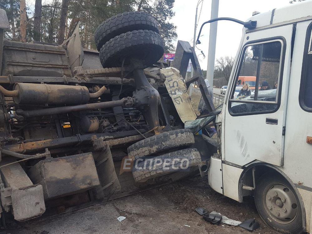 На выезде из Киева маршрутка с пассажирами врезалась в грузовик и перевернула его