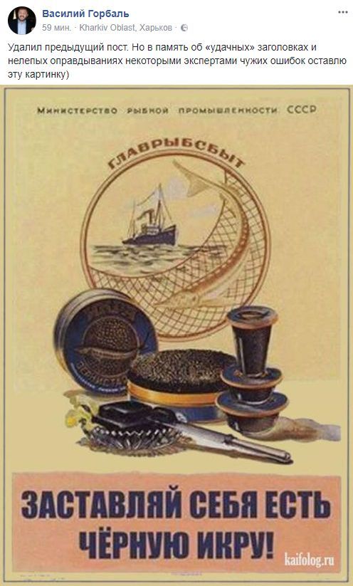 Депутат Василий Горбаль запостил картинку "в память об "удачных" заголовках и нелепых оправдываниях некоторыми экспертами чужих ошибок".