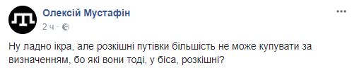 Он же задался вопросом о понятии роскоши: "Ну ладно икра, но роскошные путевки большинство не может покупать по определению, ибо какие они тогда, черт возьми, роскошные?"