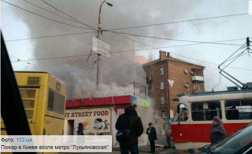 Возле метро Лукьяновская загорелся киоск, дым до небес