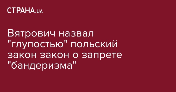 "Я против каких-то зеркальных мер, убежден, что симметрией на глупость, а именно таков этот принятый закон, будет только вторая глупость. Не хочу, чтобы украинский парламент принимал участие в соревновании глупостей с польскими парламентариями", - заявил Вятрович.