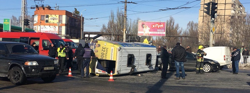 В Днепре маршрутка с людьми перевернулась в ДТП из-за неработающего светофора