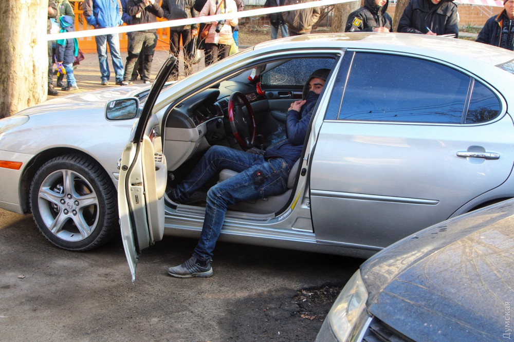 Также отмечается, что кроме раненого человека, сидящего в Lexus, есть один задержанный.