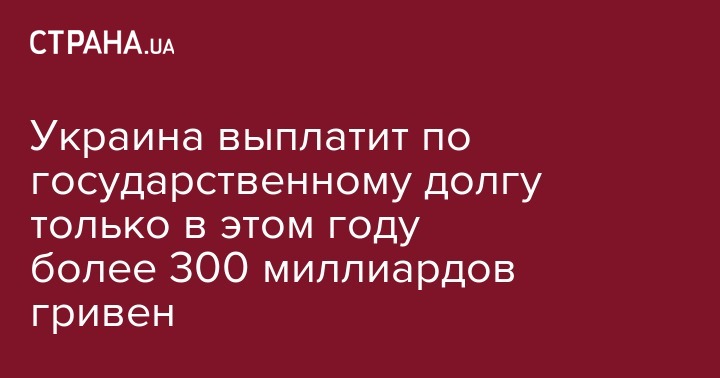 Украина выплатит по государственному долгу только в этом году более 300 миллиардов гривен