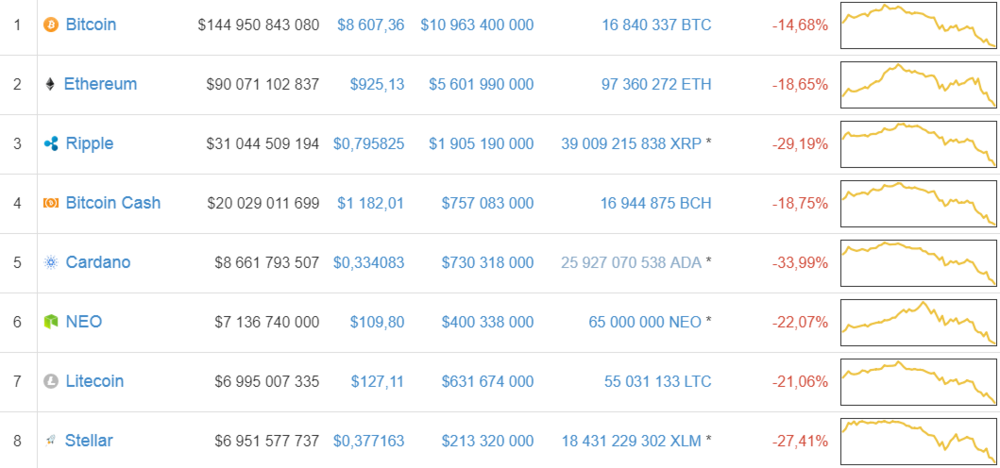 По состоянию на 10:00 2 февраля биткоин подешевел до $8,6 тысяч. Потеряли в цене и другие цифровые валюты.