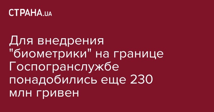 Для окончания внедрения и обеспечения корректного функционирования системы фиксации биометрических данных на пунктах пропуска через границу необходимы еще 232 миллиона гривен.