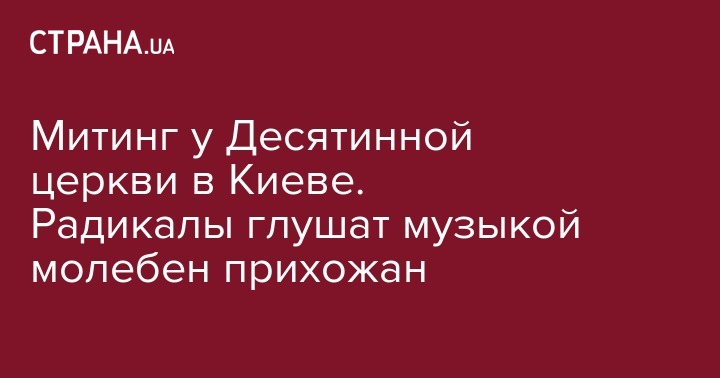 Митинг у Десятинной церкви в Киеве. Радикалы глушат музыкой молебен прихожан