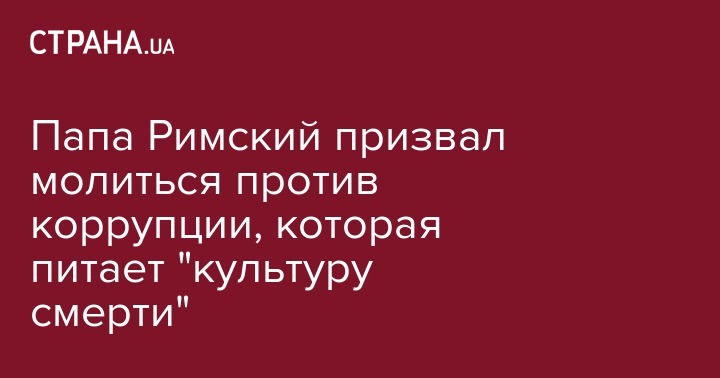 "Что лежит в основе рабства, безработицы, пренебрежения общими благами и природой? Коррупция, смертоносный процесс, питающий культуру смерти. Ибо жажда власти и жажда обладания не имеет границ. С коррупцией невозможно справиться молчанием. Мы должны говорить о ней, обличать ее зло, мы должны понимать ее и проявить волю, чтобы милосердие возобладало над убогостью, а красота над ничтожеством. Помолимся вместе, - призывает в заключение Папа Франциск, - дабы те, кто обладает материальной, политической или духовной властью, не оказались во власти коррупции", - говорит Папа.
