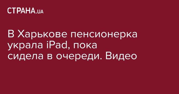 На записи видно, как пожилая гражданка какое-то время сидит в очереди, после чего в присутствии других людей спокойно берет с соседнего дивана планшет iPad и сразу же уходит.