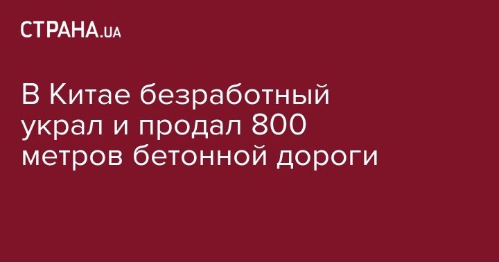 Один из жителей Китая украл и продал 800-метровый участок бетонной автомобильной дороги в провинции Цзянсу. О внезапной пропаже в полицию сообщили местные жители.