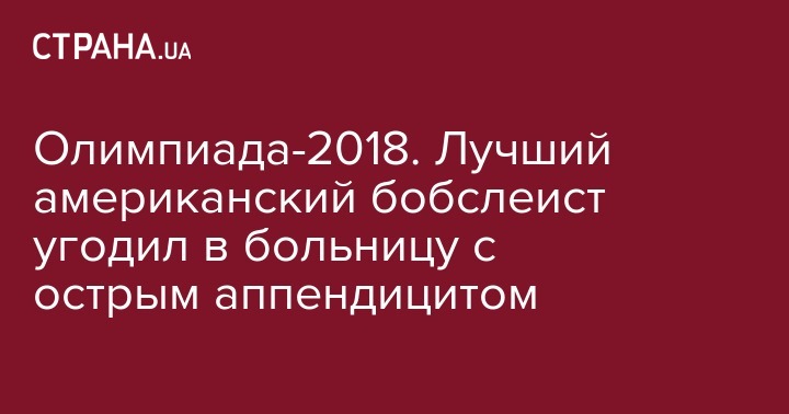 Олимпийский чемпион 2010 года американский бобслеист Джастин Олсен попал в больницу в Пхенчхане в связи с острым аппендицитом. Об сообщает официальный сайт Олимпийского комитета США.