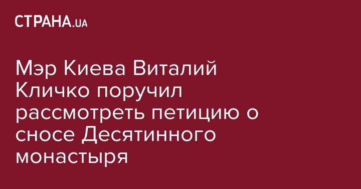 Мэр Киева Виталий Кличко поручил рассмотреть петицию о сносе Десятинного монастыря