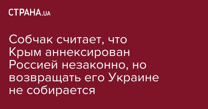 Признав, что аннексия Крыма Россией состоялась незаконно, Собчак, все же не считает, что Россия должна вернуть Крым Украине.