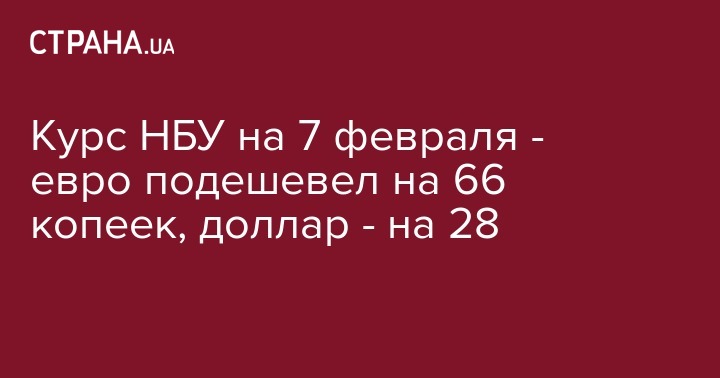 Курс НБУ на 7 февраля - евро подешевел на 66 копеек, доллар - на 28